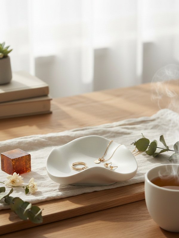 Verleihen Sie Ihren täglichen Ritualen ein anspruchsvolles Upgrade mit dieser einzigartigen Schale aus Steinzeug. Durch die organische Form ist kein Exemplar exakt gleich, was für einen authentischen Charakter in Ihrem Zuhause sorgt. Ob als stilvoller Halter für ein Duftstein (Amberblock), als sicherer Ort für Ihren minimalistischen Schmuck auf dem Nachttisch oder sogar für einen Teebeutel während eines Zen-Moments; diese Schale passt sich mühelos an.